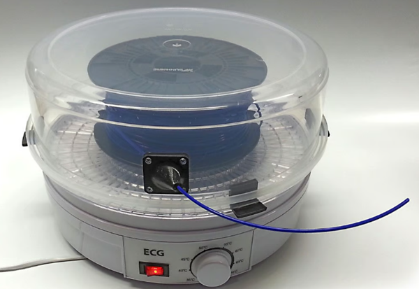 食物脱水机价格低廉,在网上随处可见。通常,它们配有可拆卸的层板和网格,您可以根据线轴的尺寸添加或移除。您还可以使用3D打印附件,使其更适合您的用途,例如Tinkerman在Thingiverse上推出的项目(如上图所示),它允许您直接从脱水机进行打印。