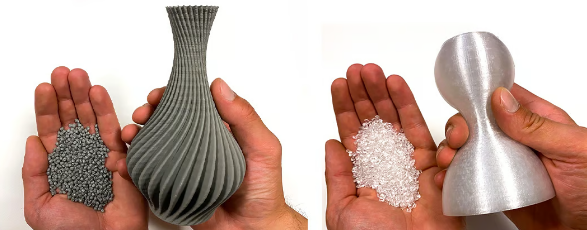 一些打印机(例如 3D Systems、Atlas 和 WASP 的打印机)具有可更换的挤出机设置,因此您可以使用颗粒或长丝进行打印;其他颗粒 3D 打印机则专用于松散材料。