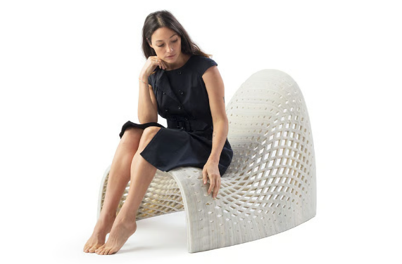 更大的打印尺寸:3D打印家具和大型物件通常只有更便宜的材料和更快的打印时间才能经济可行。机械臂3D打印机搭配颗粒进料挤出机是制造商通常用于打印超大尺寸物体的方法,例如下图所示的家具。