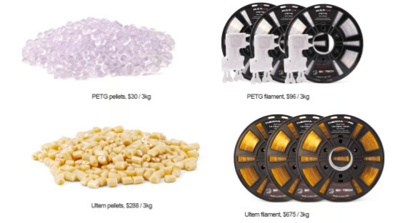 节省成本:根据购买量,颗粒的成本比相同塑料的长丝低 65% 至 90%。