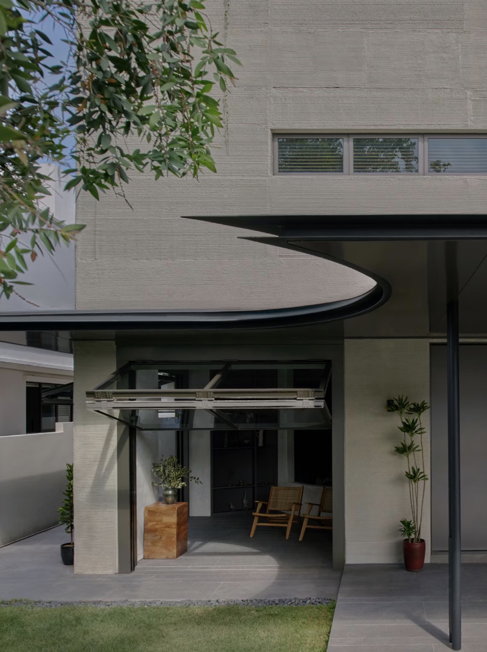 最终的建筑结构成功地实现了这些目标。这座独特的四层建筑,90%的结构由3D打印的混凝土材料制成。这座3D打印房屋最显著的特征包括:裸露的混凝土墙,将打印过程的分层效果巧妙地转化为具有纹理的设计元素;狭长的带状窗户,既提供照明,又具有隔热功能;以及一个从底层延伸到顶层的圆锥形空隙。这个设计元素不仅作为阳光房,将自然光引入室内,而且还能作为气候调节器,将暖空气向上引导。通过设计中巧妙融入的被动式涡轮抽风机,这些暖空气随后被排出。