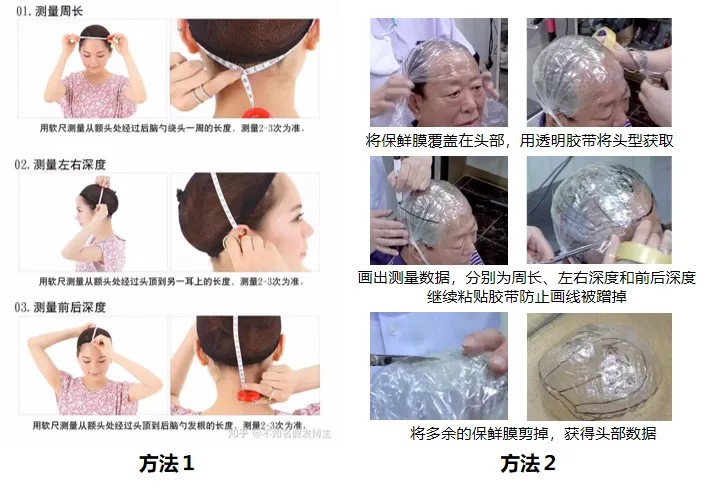 1.先让客户带上发网,将本发压平,尽可能贴合头型。(建议可以使用小一号的发网以减少误差)