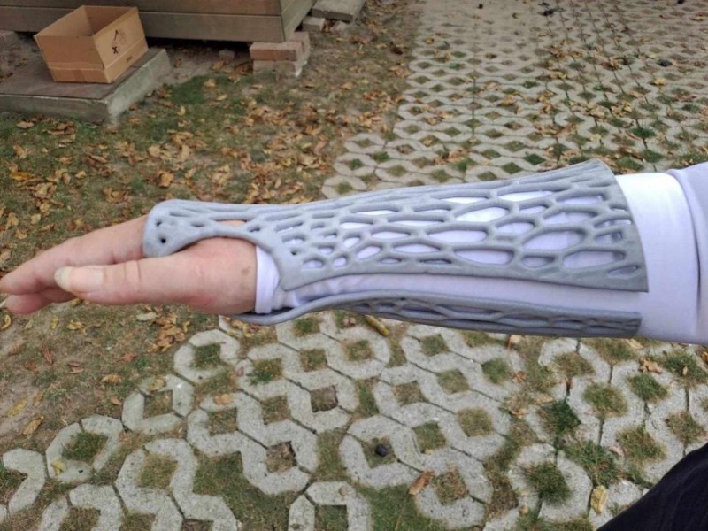 模型设计完成后,Imrich Molnár将其导入3D打印机内进行打印。对于手臂康复辅具模型,Imrich Molnár选用了具有重量轻、高抗冲击强度、韧性突出、耐化学性好的PETG材料进行打印。PETG材料目前在医疗领域已经获得了广泛应用。打印完成后,经细微调整以提高舒适度,便获得了最终的手臂康复辅具成品。