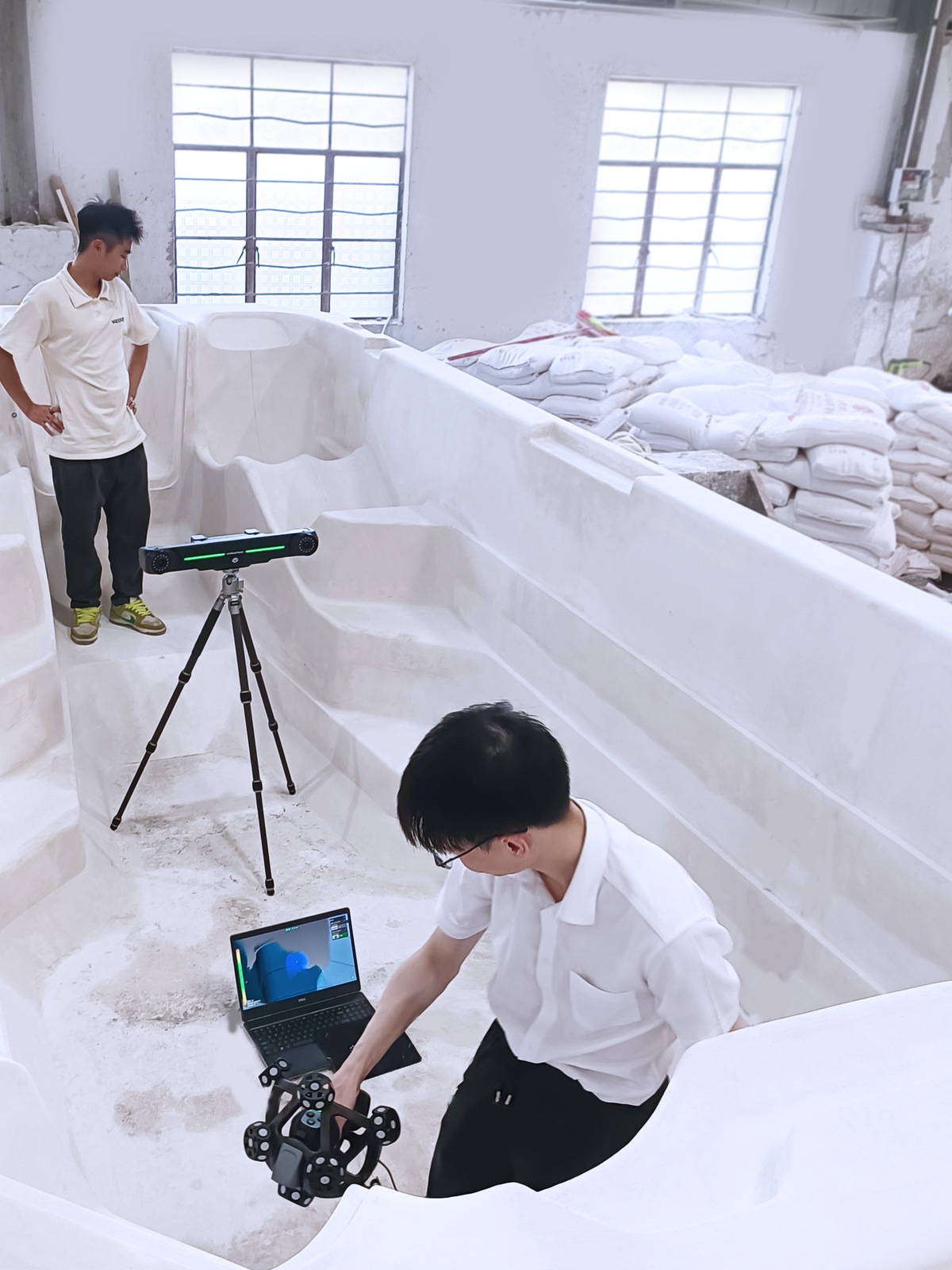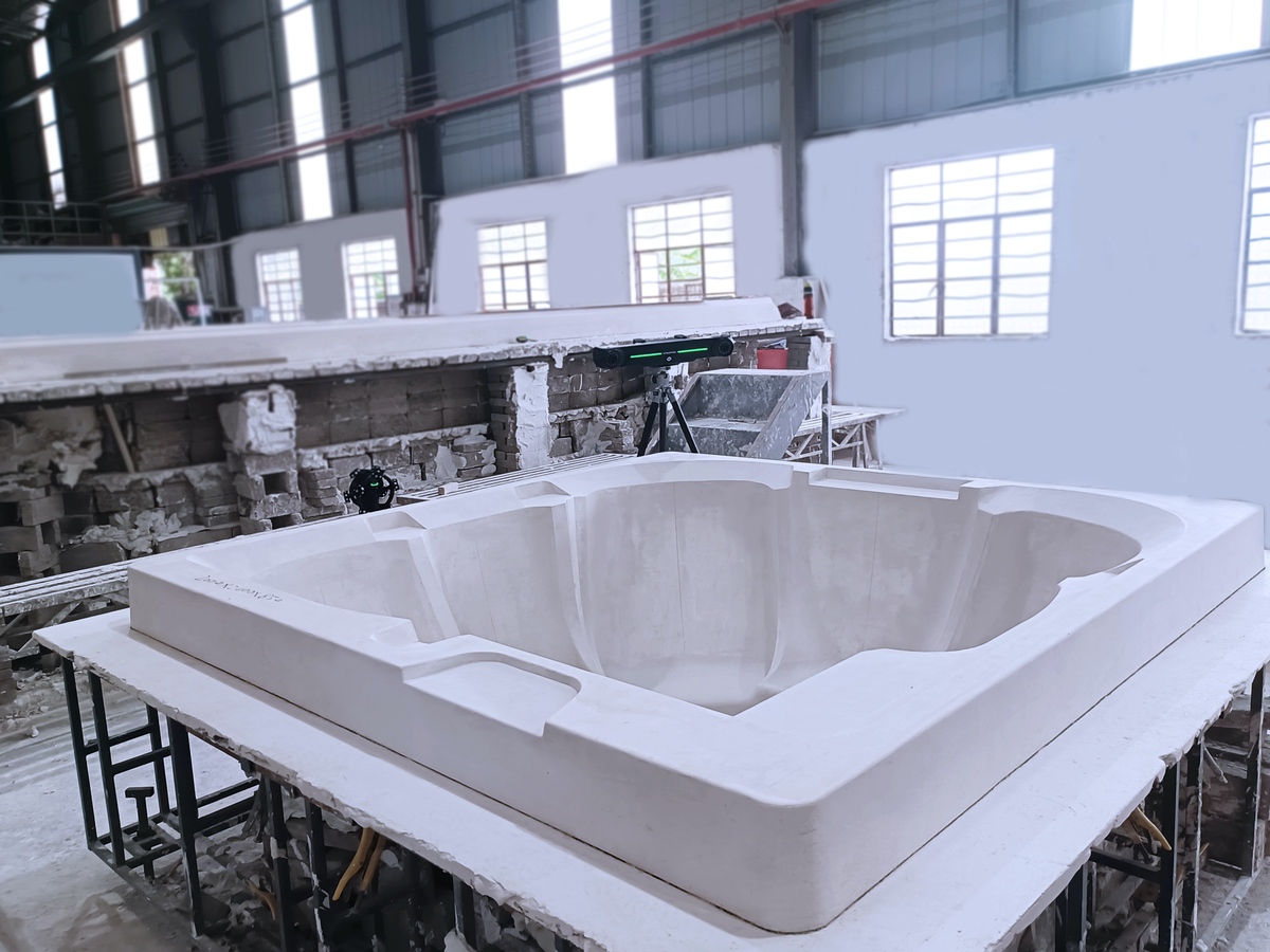 1. 浴缸模具尺寸较大,常规尺寸大约2m-6m,最大超过10m,整体较笨重,只能在现场测量,作业现场不便连接电源且环境较为嘈杂。2. 模具包含大量的曲面和复杂异型结构设计,使用传统方式测量、建模较为困难。