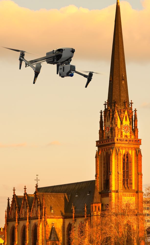 △一架无人机搭载 Eagle 3D 扫描仪在城市中飞行