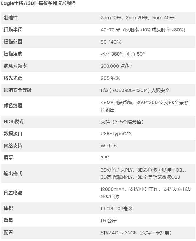 Eagle和Eagle Max两款型号分别针对不同的市场需求。Eagle Max特别增加了三个摄像头(两侧各一个,顶部一个),显著提升了扫描速度与效率,尤其适合大型项目的数据采集工作。用户可以根据自身需求选择最适合的版本,以实现最佳的工作效果。