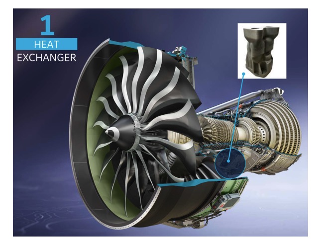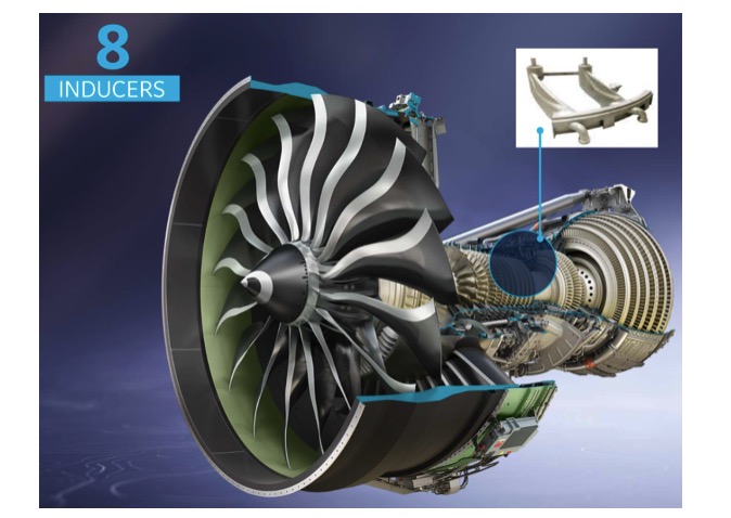 GE为了使用3D打印技术来制造发动机,多年前收购了两家德国的金属3D公司 Concept Laser 和 瑞典的Arcam AB。2019年的时候,通用电气航空增加了27台Arcam电子束熔化(EBM)机,为GE9X发动机生产铝化钛(TiAl)叶片。据通用电气称,3D打印技术使GE9X发动机的燃油效率比GE90提高了10%。