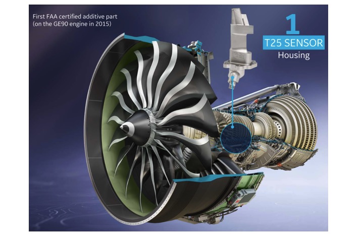 T25 传感器外壳乃是首个获取 FAA 认证的增材制造的飞机发动机部件。每个 GE9X 发动机均安装 1 个 T25 传感器外壳,其运用钴铬合金通过 3D 打印而成,将 10 个零件合并为 1 个复杂结构的零件,进而使精度提高 30%。
