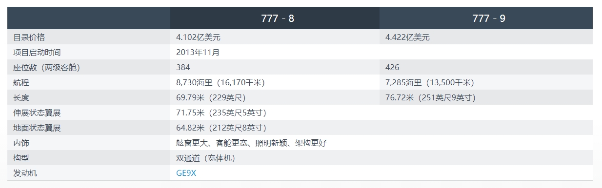 据南极熊了解,波音777X系列飞机包括777-8X和777-9X两款机型,是世界上最大、最高效的双引擎喷气式飞机,其油耗比同类飞机低10%,排放和运营成本也是同类飞机中最低的。