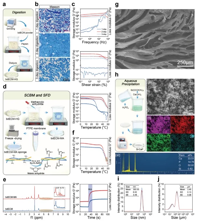 图2 bdECM-MA和Si-CaP的制备及物理性质
