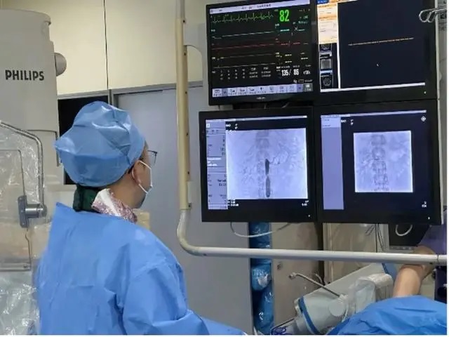 骶骨切除手术一般出血量为5000-10000ml,伦登兴博士团队术前对患者进行MDT讨论,制定了周密的计划。手术开始由介入放射科行腹主动脉球囊阻断,以减少术中出血。术中在麻醉科的配合下,顺利切除肿瘤并安装3D打印半骶骨假体,术中出血约2200ml,手术时间约8小时。术后患者复查片子见假体位置良好,拔除尿管后可自主排尿。