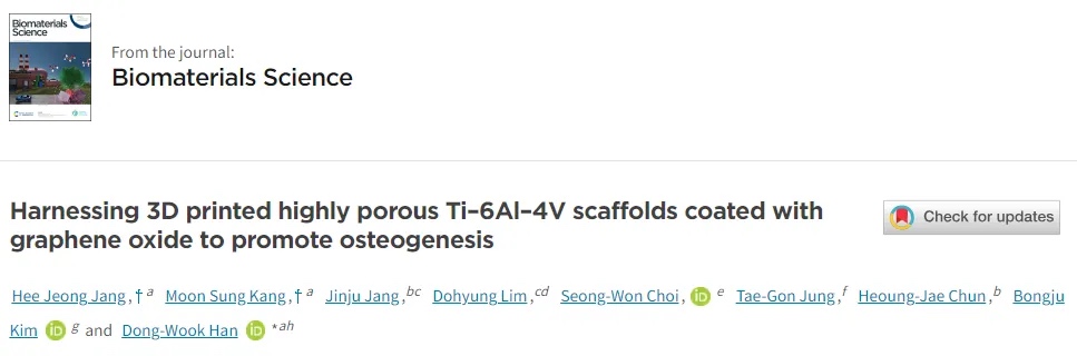 利用3D打印的高多孔Ti-6Al-4V支架涂有氧化石墨烯来促进成骨