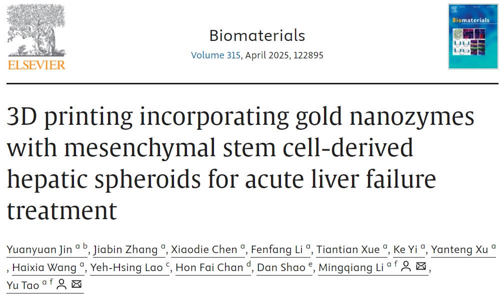 3D打印结合金纳米酶和间充质干细胞衍生的肝球体用于急性肝衰竭治疗