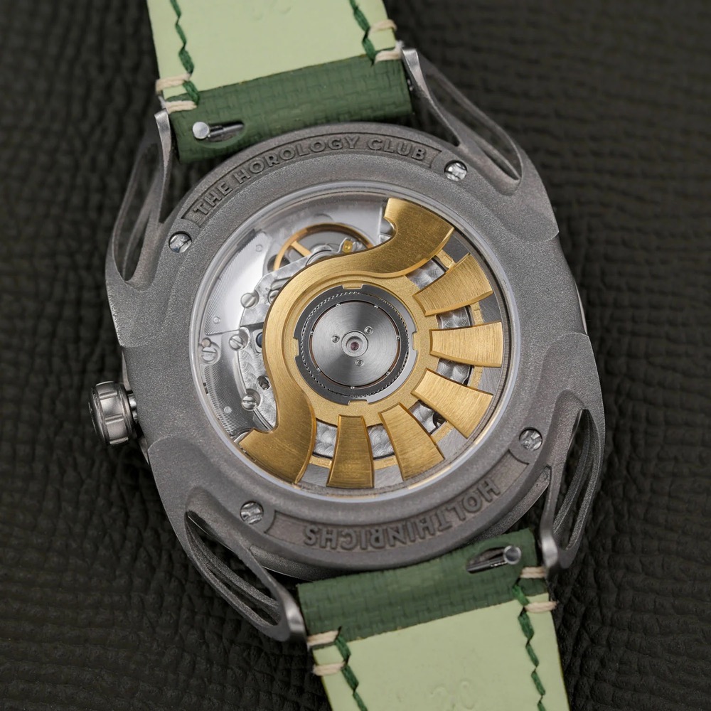 The Horology Clu(THC)是一家位于中国香港的钟表爱好者俱乐部,这款限量版腕表体现了 Holthinrichs创新的Horlogerie Brut理念——强调纹理、材料和光泽,与THC以收藏家为中心的设计语言相结合,以现代风格重新诠释古典制表工艺。