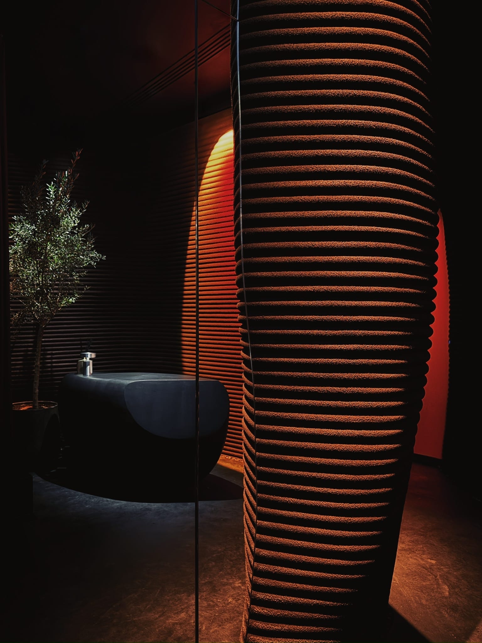 游客进入MYATA Platinum Lounge后,将被27个独特的峡谷状结构所吸引,这些结构由超过 2万个3D打印组件构成,每个组件都通过精心设计和制造,以营造出一个引人入胜的环境。这些组件是由35台3D打印机使用再生塑料制作而成,并涂有特殊的纹理漆,为顾客提供了一个既美观又环保的就餐体验。DA BUREAU的首席执行官兼联合创始人Boris Lvovsky解释说:“我们以沙峡谷为灵感,创造出一个现代室内空间。这些峡谷是自然界中由水和风塑造而成的动态地质结构。我们通过 3D打印技术重新诠释了这种流动且无定形的形态,创造出相互交织的凹槽结构,为顾客提供了一个内向、内视的空间体验。”