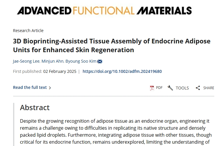 釜山国立大学通过3D打印脂肪组织改善和加快伤口愈合