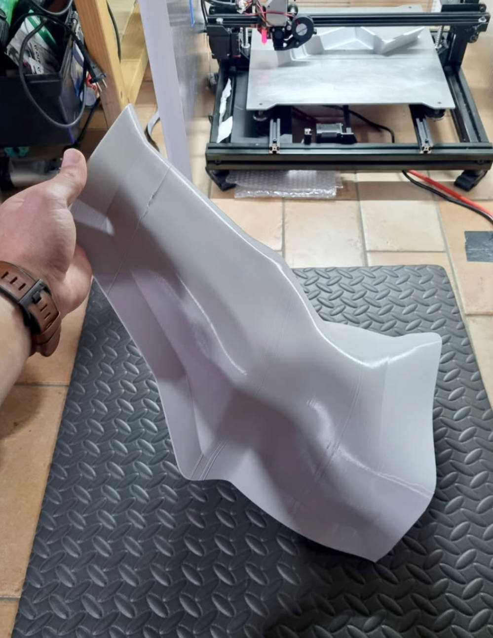 为制造这款Airbike,Tomasz使用了桌面级3D打印部件。他通过一台Prusa打印机,打印出短碳纤维增强部件。随后,他将这些部件置于真空袋中,并用树脂进行浸润。这种DIY式的碳纤维增强复合材料(CFRP)制造工艺,此前已在航模和无人机爱好者社群中有所应用。人们一直对碳纤维线材和树脂浸润工艺所能获得的材料性能充满好奇。众所周知,许多碳纤维线材本身的强度并不理想,但目前尚无定论通过树脂浸润处理,是否能让个人在家中制造出足以满足飞行要求的零部件。对于无人机和遥控飞机领域而言,这种工艺的潜力可能更为巨大,它能让更多人利用相对基础的设备配置,实现一定程度的生产制造。这种制造方式有望制造出强度更高且能在严苛环境下快速生产的零部件。如果能够弥补一定的性能差距,那么意味着可以用成本远低于高温3D打印机和昂贵材料(如Ultem)的方式,使用成本更低的PA碳纤维材料并进行树脂浸润,来获得性能稍逊但成本更优的部件。据推测,Tomasz可能还在家中将这些3D打印部件与手工铺层以及片状材料相结合。进行此类操作的技术难度极高,且许多树脂和纤维材料本身具有危害性。