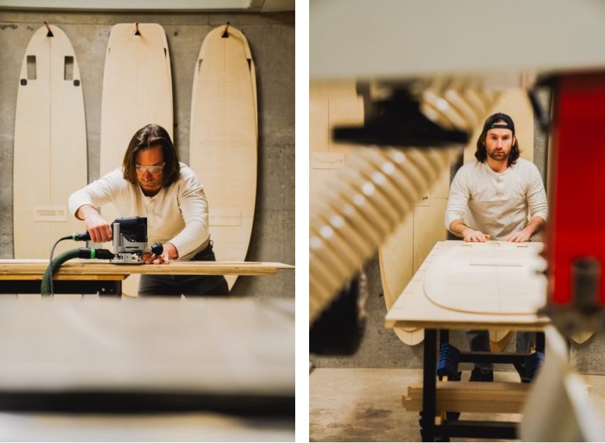 这一契机促使他投入到冲浪板环保制造的探索之中。新的冲浪板生产方法需要优先考虑可持续性和性能:这两点对冲浪至关重要。传统的冲浪板由泡沫板芯制成,外覆玻璃纤维和树脂层。这些材料不仅来自不可再生资源,而且生产过程(包括打磨树脂和玻璃纤维涂层)还会产生颗粒物和有害挥发性有机化合物 (VOC)。在深度调研与反复试验之后,耐浪且价格实惠的冲浪板——FUNNER SurfCraft由此诞生。