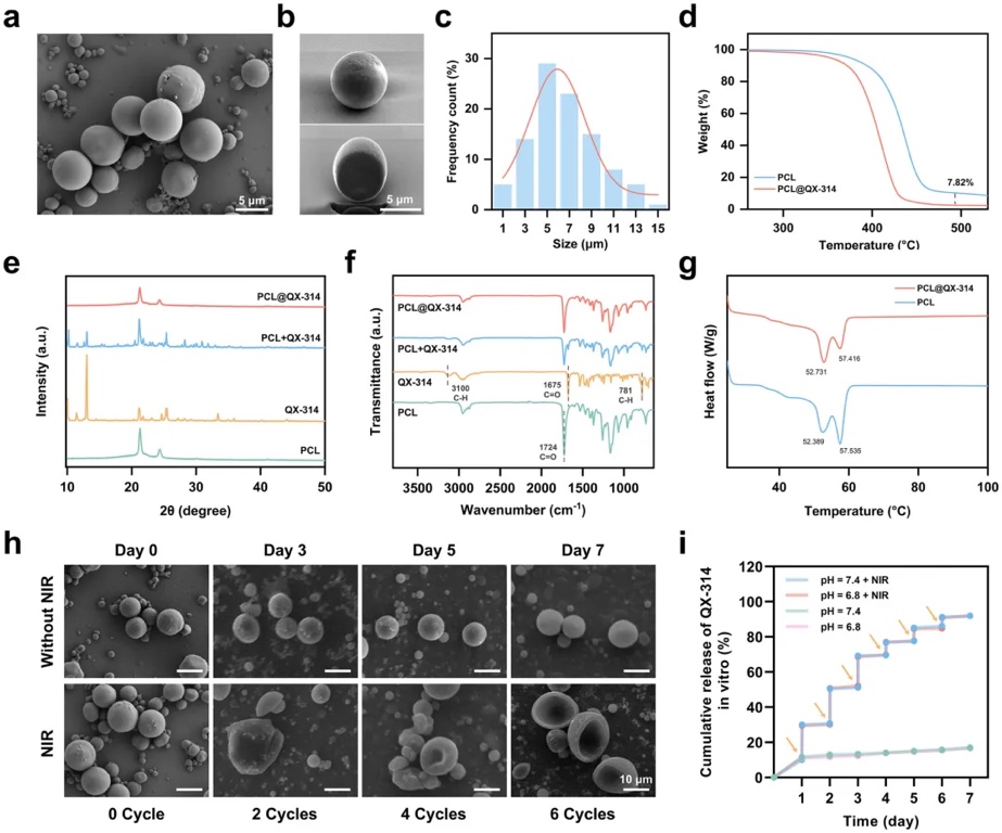 通过体外实验,研究表明该微针系统能够在术后创伤中持续释放H2,最大程度地减少氧化应激和炎症反应,为创伤愈合提供更好的微环境。在NIR激光照射下,PDA修饰的微针释放了QX-314,使其通过神经膜离子通道精准进入神经细胞,从而提供个性化的镇痛治疗。