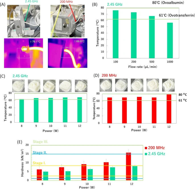 研究团队的实验表明,只需改变施加能量的频率,就能生产出具有多种特性的凝胶,为个性化医疗营养干预提供了全新解决方案。当他们使用200 MHz的较低频率(属于射频范围)时,生成的凝胶明显更硬,并且能够更有效地保持凝胶结构和水分含量。相比之下,使用2.45 GHz的较高频率(类似于标准厨房微波炉的频率)生成的凝胶则更柔软,粘性更强。