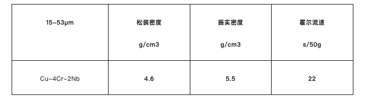1、为避免氮化物产生对Cu-4Cr-2Nb合金导电性和导热性的不良影响,该系列粉末是在高纯氩气环境中生产的。建议应用商在增材制造和热处理过程中,也采用氩气作为保护气体,而非氮气;