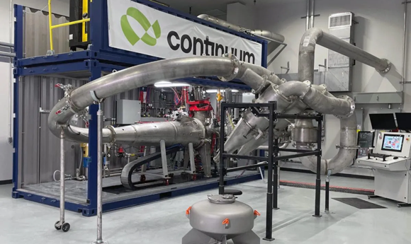 △Continuum的 Greyhound M2P 3.0 熔体转粉末等离子雾化系统。图片来自 Continuum Powders。