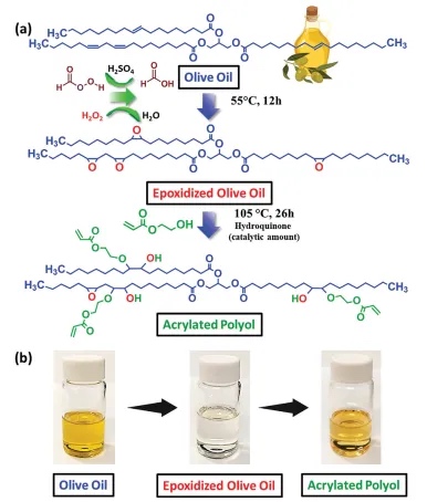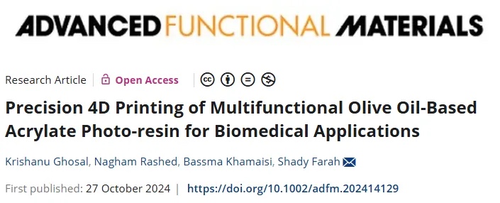 有鉴于此,来自以色列理工学院的 Shady Farah团队报道了一种由改性橄榄油衍生而来的生物基光敏树脂,专为高分辨率无溶剂4D打印而设计,并具备多功能特性。