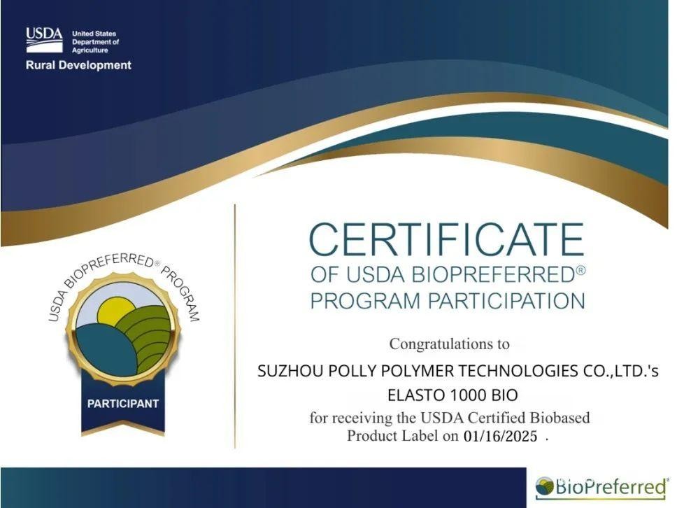 2025年2月,南极熊获悉,苏州博理科技自主研发的弹性体生物基材料正式获得美国农业部(USDA)认证的生物基产品标签(Certified Biobased Product Label),标志着中国企业在高性能3D打印材料领域占有一席之地。