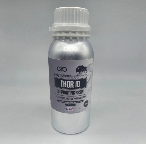 ThOR 10兼容桌面级与工业级DLP/LCD光固化3D打印机,延续了COR材料良好的耐用性,专为解决光聚合物打印件长期存在的脆性问题而设计。根据两家公司的解释,陶瓷增强填料的引入显著提升了材料的抗冲击性与刚性,使ThOR 10能够胜任航空航天、汽车以及电子行业中对性能要求极高的生产级应用。目前,ThOR 10可提供385nm和405nm两种配方,均可通过polySpectra和Tethon 3D官网接受订购。