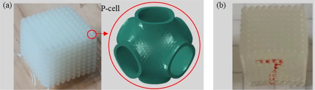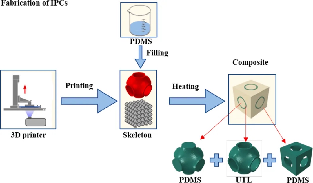 在最新科研进程中,互穿相复合材料以其优异的力学性能得到了广泛的应用。为了进一步获得增强的性能并阐明潜在的力学机制。来自中国工程物理研究院的研究团队通过将超弹性PDMS填充到基于粘塑性聚合物的3D打印Schwarz Primitive (P)细胞骨架中来设计和制造三连续IPCs,其中P细胞骨架是由摩方精密面投影微立体光刻(PμSL) 3D打印技术(nanoArch® P150,精度:25 μm)制备而成。