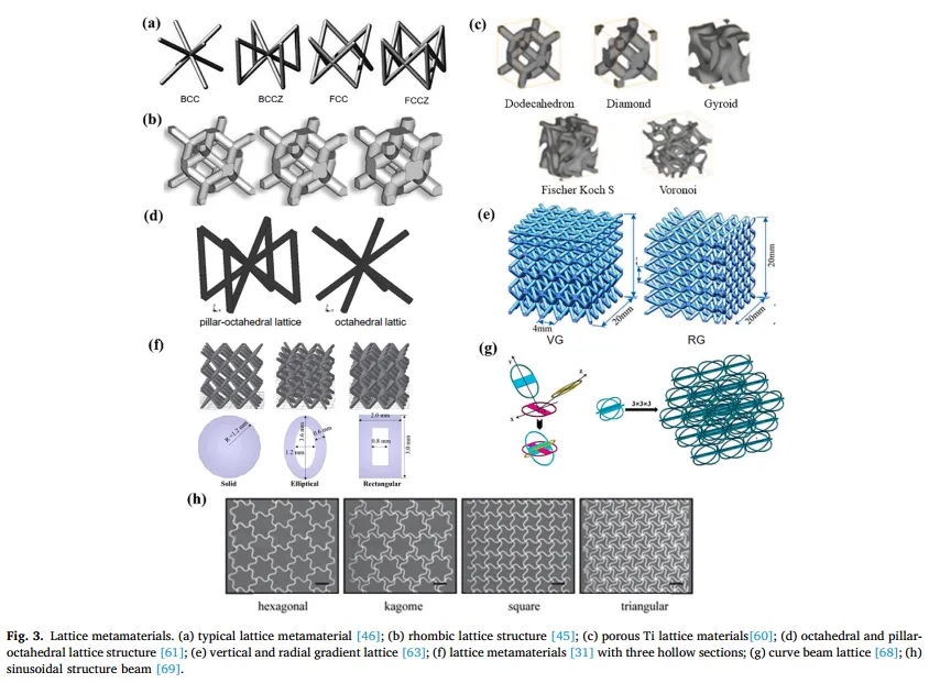 目前,研究人员对探索金属超材料的多功能性越来越感兴趣,例如具有优异的机械性能、能量吸收性能以及生物相容性。本文综述了金属超材料的设计、制造、性能和应用方面的最新进展。实验结果表明,通过改变结构设计,选择合适的制造工艺。虽然文中提到了几种超材料的设计结构,但其目的都是为了满足工程要求。然而,与金属超材料设计相关的一些方面仍有待探索。未来的设计趋势包括更复杂的微观结构设计、多功能集成设计和应用优化算法以获得更精确的性能监管和创新应用。