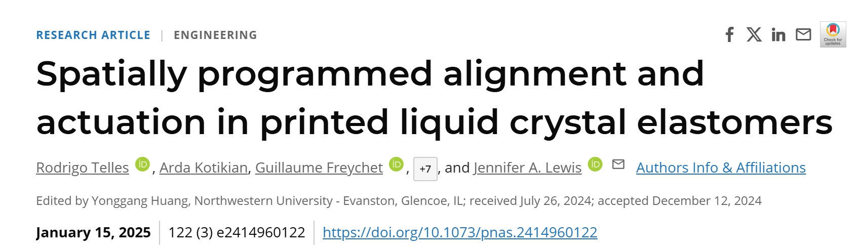 这项研究以题为“Spatially programmed alignmentand actuation in printed liquid crystal elastomers”的论文发表在《美国国家科学院院刊》上,资深作者是哈佛大学应用科学与工程学院 Hansjörg Wyss 生物启发工程教授 Jennifer Lewis。Lewis 的实验室在 3D 打印油墨的分子和纳米级设计方面拥有数十年的经验,可用于开发新型功能材料。这项研究由前哈佛大学博士后研究员 Emily Davidson 共同领导,她现在是普林斯顿大学的教员,擅长设计、纳米级组装、X 射线表征和软材料 3D 打印。
