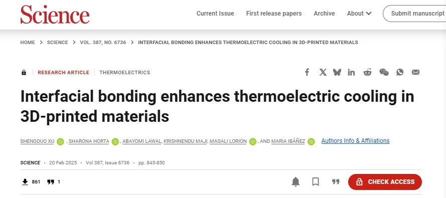 2025年2月23日,奥地利科学技术研究所(ISTA)研究人员开发出了一种用于3D打印的高性能热电材料,并构建了热电冷却器。这项研究已发表在《Science》杂志上,揭示了一种提高电子设备热量管理效率的新途径,它的应用范围非常广泛,包括可穿戴设备和医疗治疗领域。