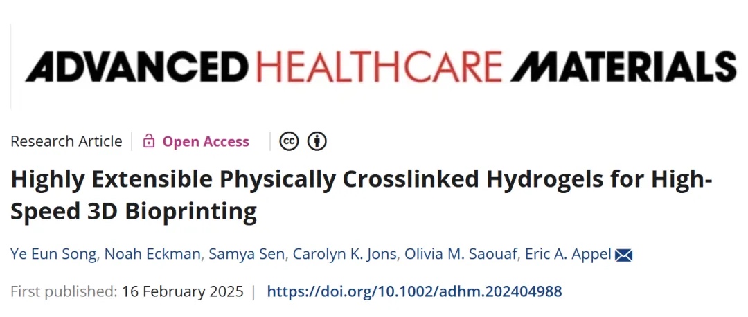 斯坦福大学团队:高延展物理交联水凝胶!3D生物打印的 “速度密码”