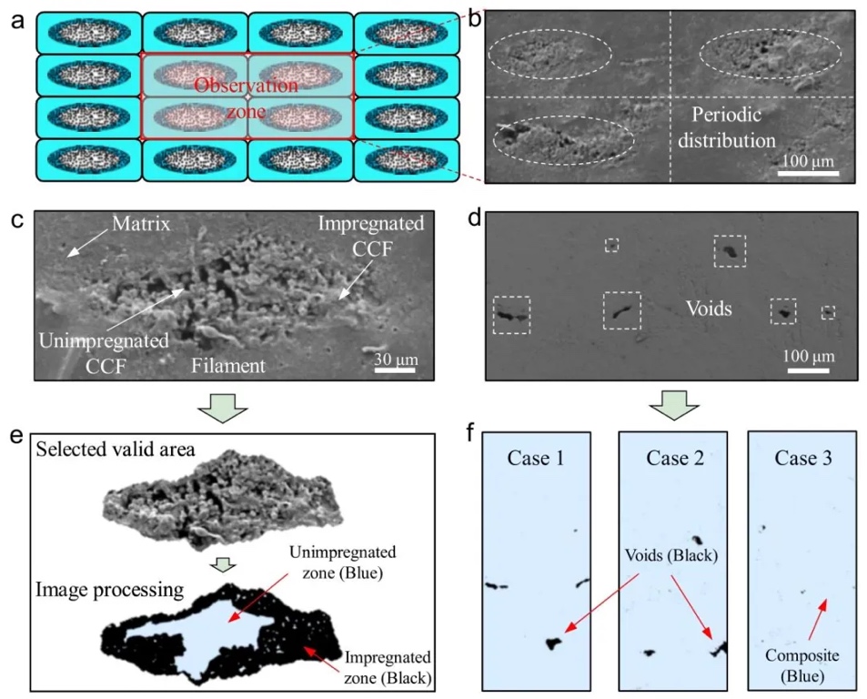 3D打印连续碳纤维增强复合材料(CCFRCs)因具有轻质、高强度和设计灵活等优势,在航空航天、汽车等领域应用前景广阔。然而,其制造过程中的复杂因素,如各向异性传热、聚合物熔化结晶和收缩等,会导致微观结构缺陷,使得材料宏观力学性能存在较大差异,这严重限制了其广泛应用。此外,现有研究工具在表征微观结构参数时存在局限性,且相关模型难以准确量化材料和微观结构的不确定性。