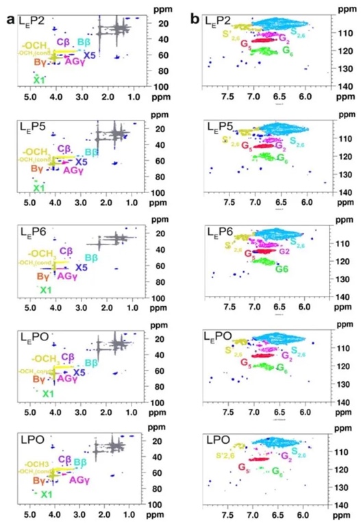 借助HSQC NMR光谱研究方法,对不同木质素 - 己内酯聚合物的芳香族和脂肪族区域C - H相关信号进行研究。结果表明,LEP系列聚合物和LEPO在含氧脂肪族区域与LE有相似连接,同时因PCL链引入,脂肪族区域信号增强。LPO和LEPO的脂肪族和芳香族连接区域有相似之处,但LPO中部分芳香族连接信号强度弱于LEPO,这可能与L和LE的差异以及PCL在LPO中的接枝和长链结构有关。