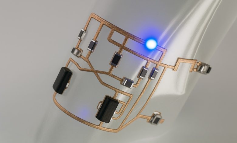 流体拉伸法为下一代电路设计提供了强大的工具,尤其是在柔性和可穿戴电子产品领域。这种高精度和机械耐久性适用于传统打印技术无法胜任的应用,例如柔性医疗传感器、可拉伸光显示器和紧凑型物联网设备。由于它无需多层布线和通孔钻孔,因此可以缩短生产时间和降低成本,同时提升定制化程度。展望未来,这种方法可能会通过启发油墨创新和热设计策略来影响更广泛的增材制造领域,从而支持更多材料和基材。