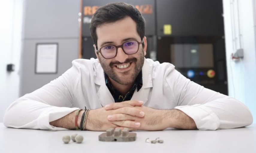 △IMDEA材料研究所研究员 Ignacio Rodríguez Barber 与多个 LPBF 打印的 IN939 结构合影