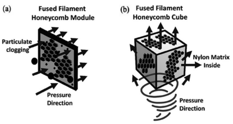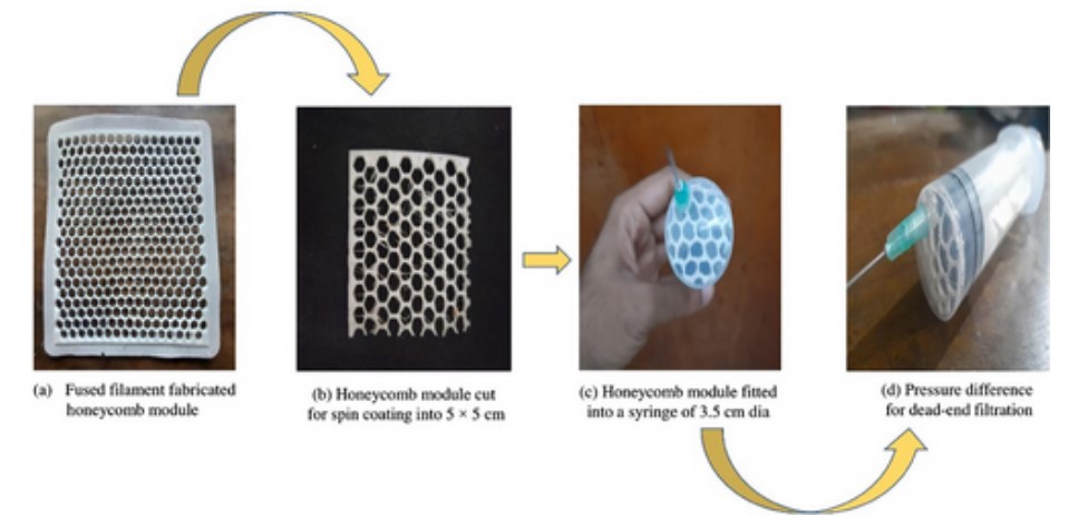 2025年8月13日,库尔纳工程技术大学(KUET)的研究人员开发了一种 3D 打印蜂窝过滤器,用于处理家庭废水。蜂窝过滤器采用Ultimaker FFF 3D打印机制作,采用原生尼龙丝与废旧尼龙织物解聚后获得的再生材料混合,并涂覆二氧化钛(TiO₂)纳米颗粒。之所以选择尼龙,是因为优异的耐化学性、强度以及在反复接触废水条件下的耐用性,比其他常见的3D打印材料(例如PLA、ABS或PETG)更适合。