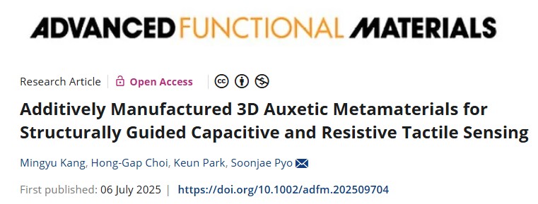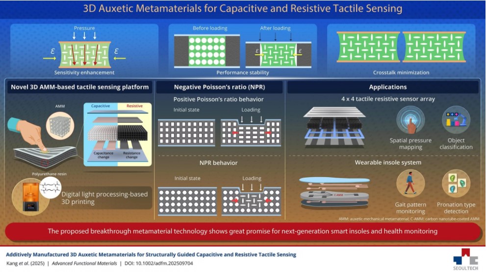 2025年8月31日,首尔国立科技大学 (SEOULTECH) 的一个研究小组,由研究第一作者、机械设计与机器人工程系硕士生 Mingyu Kang 先生领导,其中包括机械系统设计工程系副教授 SoonjaePyo 博士,提出了一种基于 3D AMM 的新型触觉传感平台,具有球形空隙的立方晶格,并采用基于数字光处理的 3D 打印技术制造。