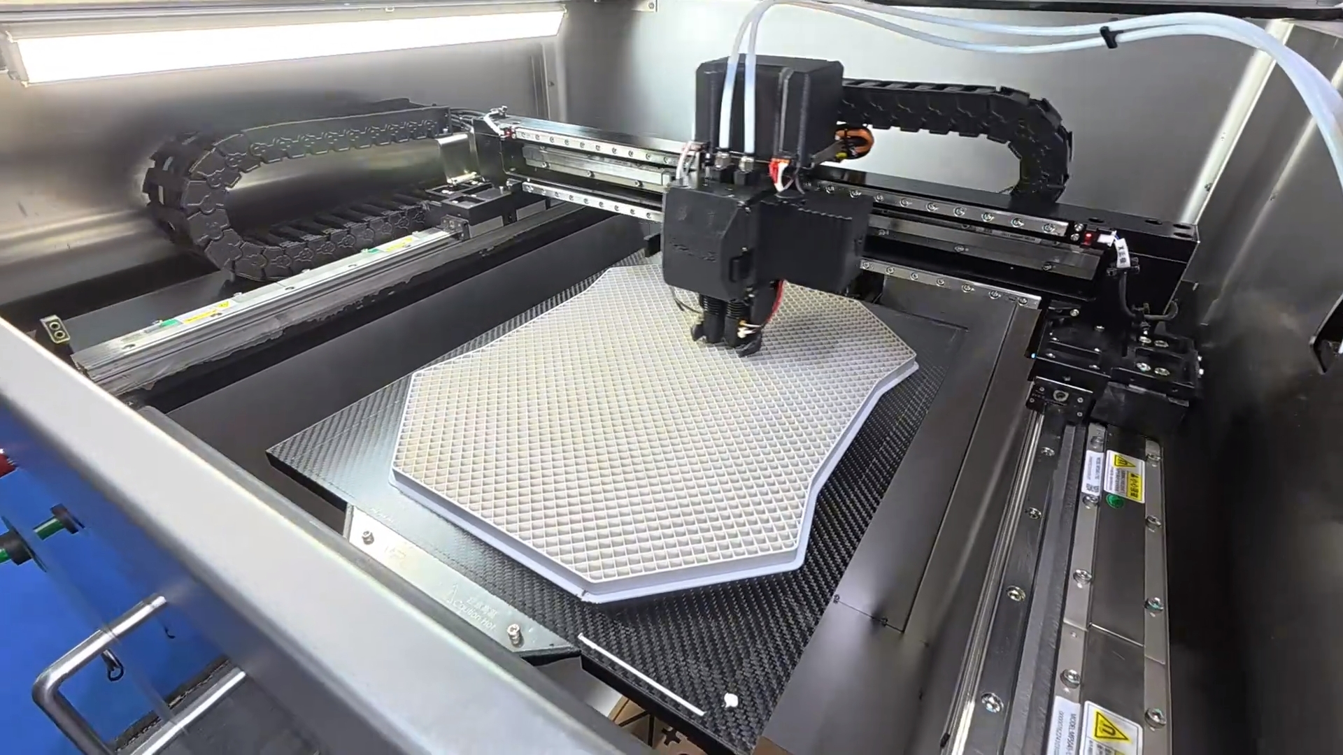 在设备方面,Polymaker合作方现场展示的3D打印机型成型尺寸为400×500×420mm,能够满足多数救灾、应急通讯无人机的打印需求;另有大尺寸机型,成型尺寸1-1.2米,适用于更大尺寸部件打印。