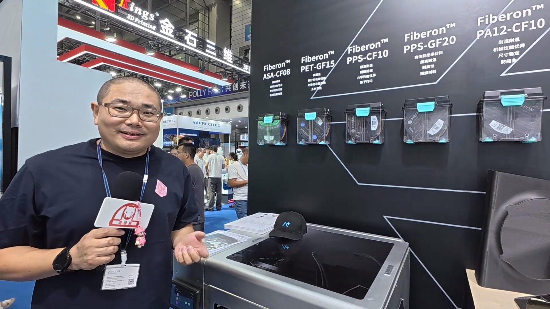 在展会现场,Polymaker战略合作应用方代表黄总分享了Fiberon系列材料在无人机制造领域的应用案例。以PET-GF材料为例,在现场的3D打印机型上,使用0.4mm喷头、0.2mm层厚,日产能可达1.5-1.8公斤,在120mm长度下公差可控制在±0.1mm。整个Fiberon系列在该平台上,日产能力可达2-6公斤,兼顾打印速度与精度。
