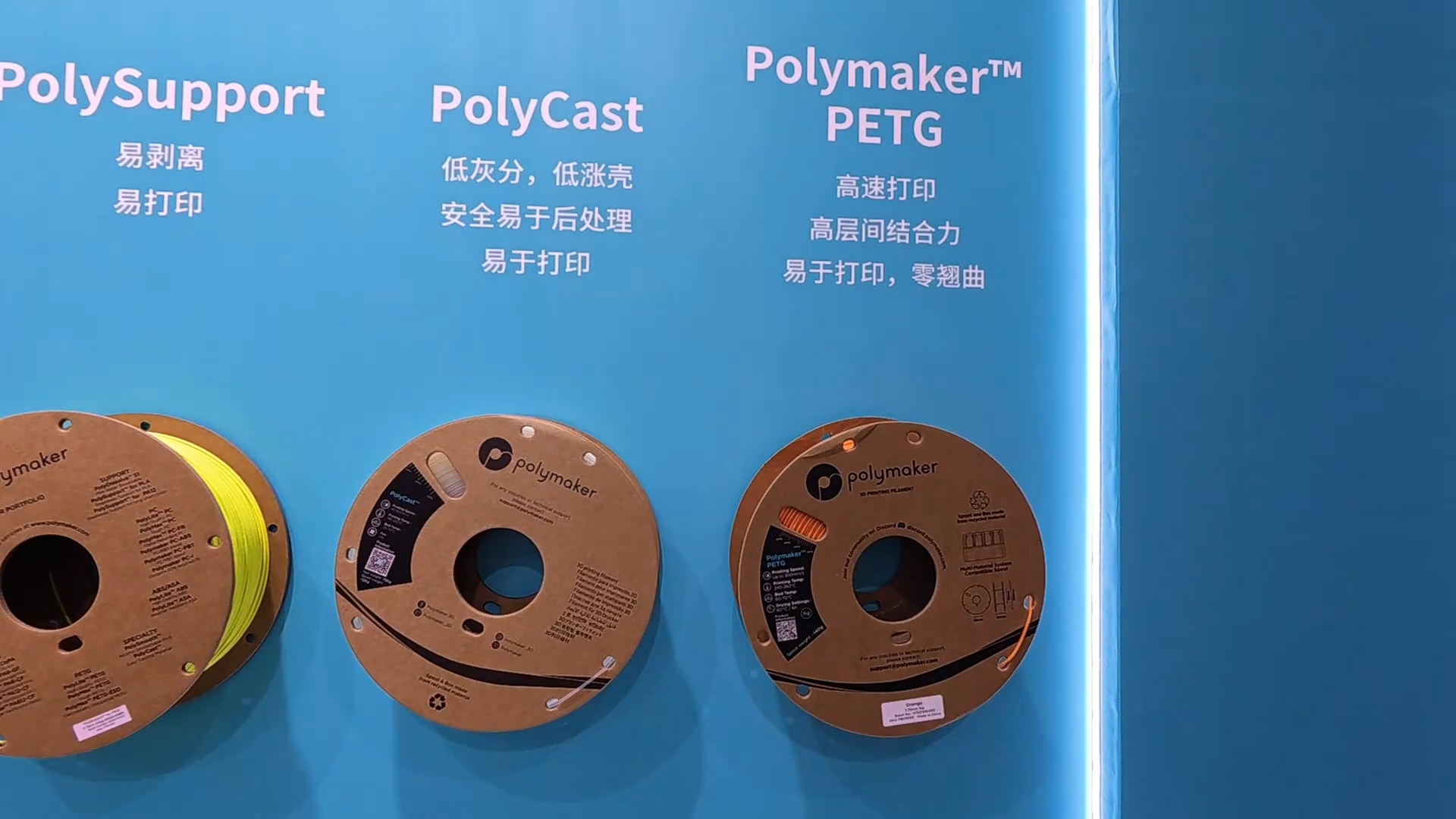 在常规材料展区,Polymaker展示了出货量较大的PLA、PETG、ABS等材料,其中两款升级产品尤为引人注目: