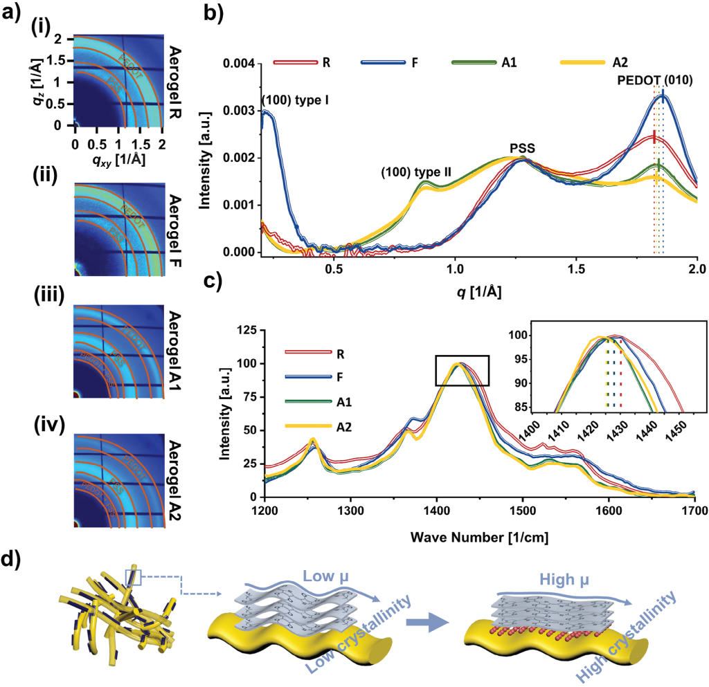 研究人员制备了两类PEDOT:PSS浆料。其中一种是将锂盐和GOPS添加剂混合,以增强拉伸性和导电性。第二种方法是依靠过滤和溶剂交换去除多余的PSS,从而降低热导率并提高热电效率。这种双路线策略使气凝胶能够针对特定应用进行定制:基于添加剂的配方最适合可拉伸互连,而过滤变体则为TE设备提供了更高的品质因数。