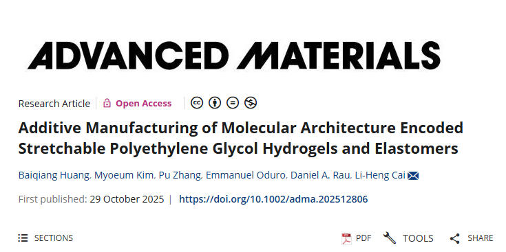 未来,研究人员或许可以将PEG与其它材料复合,制备出具有不同化学成分的3D打印材料,从而开辟更广阔的应用前景。此外,团队还发现这种新材料在室温下兼具高导电性与优异拉伸性,这种新材料有望成为高性能固态电解质,推动下一代电池技术的发展。Cai教授对此表示:“新材料的独特性能为固态电池技术指明了极具潜力的创新方向,我们将在此领域持续探索。”