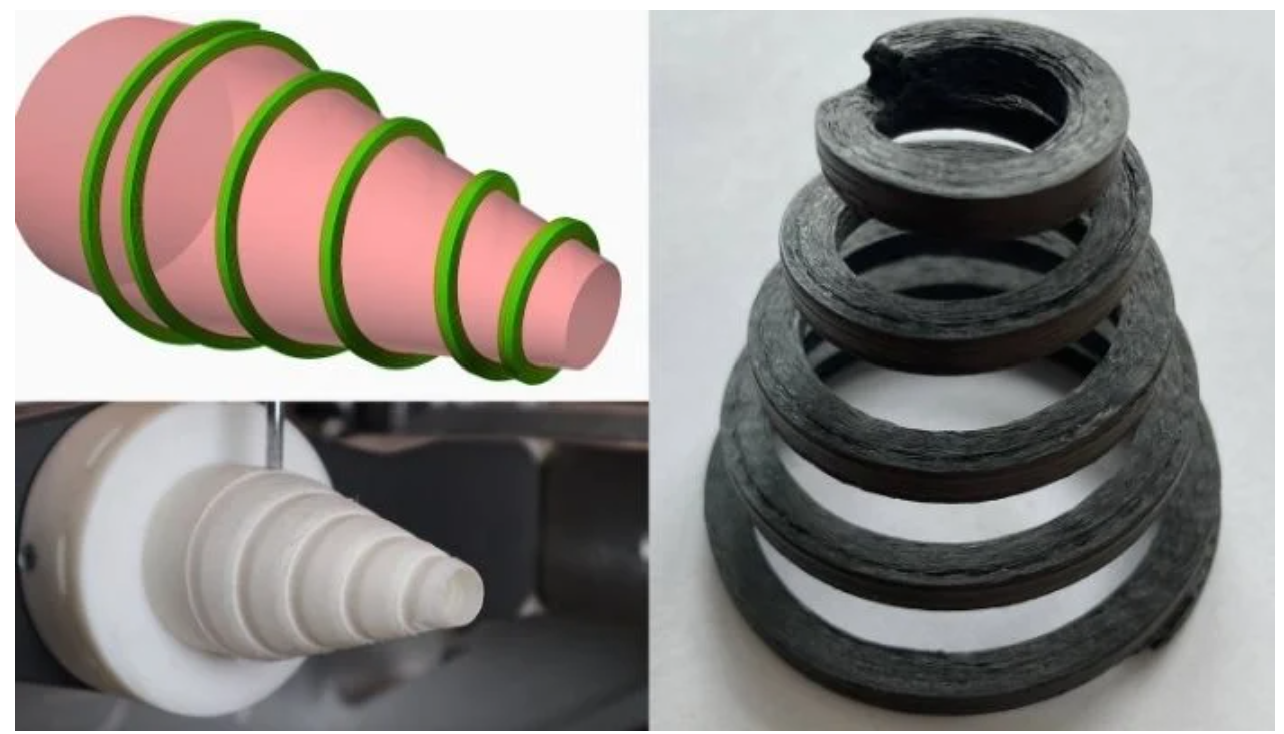 Nicolai Wampl说:“我们的机器可以打印大多数熔点低于 500°C 的热塑性塑料,以及碳纤维、芳纶和玻璃纤维等复合材料。此外,它还可以用电线代替纤维进行打印,以整合电气特性,尽管此功能仍在开发中。我们已经成功生产出第一批演示部件。”