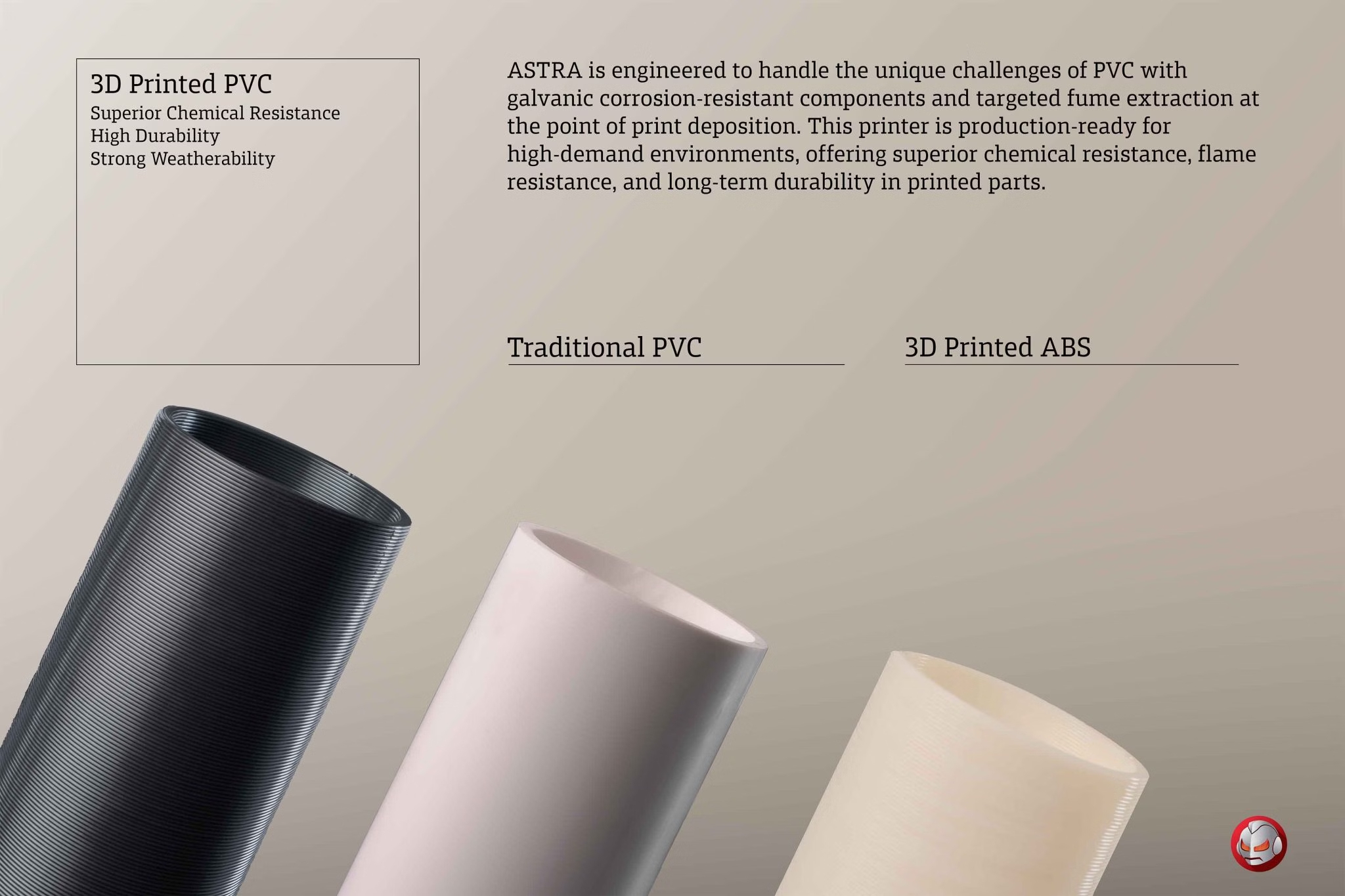 ASTRA设计目标是为那些需要利用PVC独特材料属性(例如耐化学性和长期耐用性)的行业带来变革。主要应用领域涵盖车身模具、管道系统,以及对材料稳定性和持久性要求极高的医疗设备外壳。