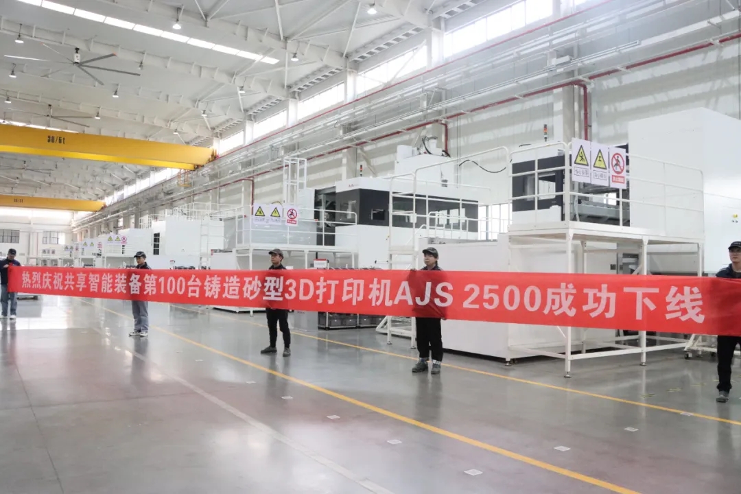 共享智能装备芜湖工厂第100台AJS 2500铸造砂型3D打印设备成功下线