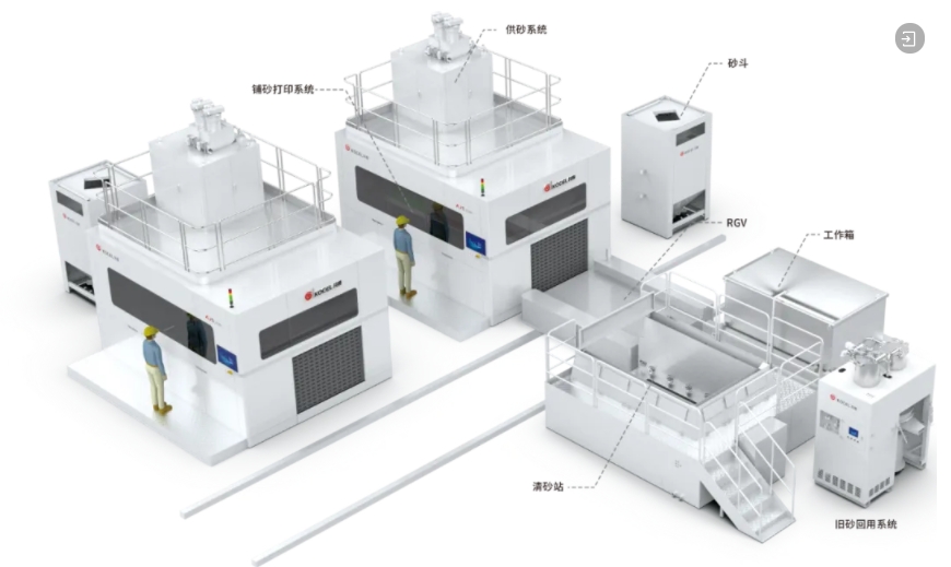 AJS 2500是共享智能装备自主研制的一款3D打印产业应用机型,设备成型尺寸为2500×1500×1000mm,打印精度±0.4mm,打印效率800L/h,可组建生产线、3D打印工厂、满足产品批量化生产需求,是铸造3D打印产业化应用主流机型,被广泛应用于航空航天、工程机械、能源装备、汽车制造等领域。