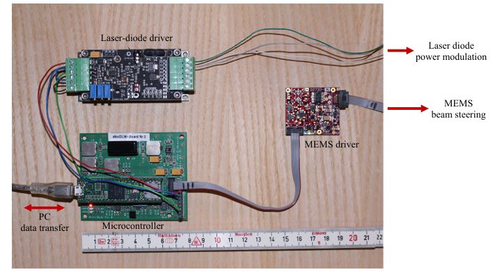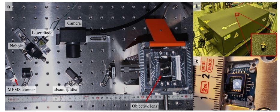●MEMS扫描器:二维MEMS扫描器用于在xy平面内引导激光束扫描任意轨迹,与仅1.6mm直径的MEMS反射镜兼容。